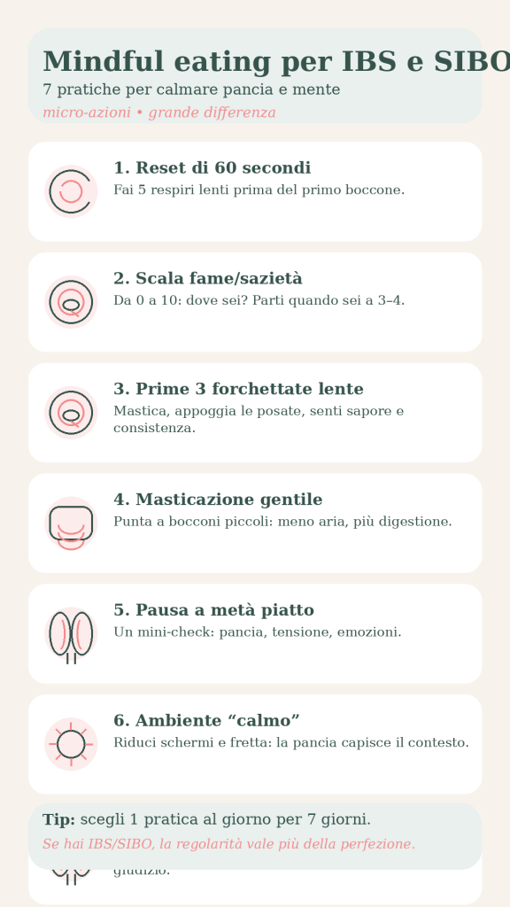 Le 7 pratiche di mindful eating per IBS e SIBO
